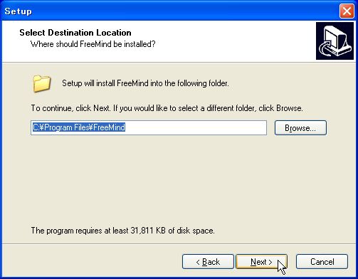 お使いのPCに最新版Javaが入っていることを確かめてから、FreeMindのインストーラを開きます。